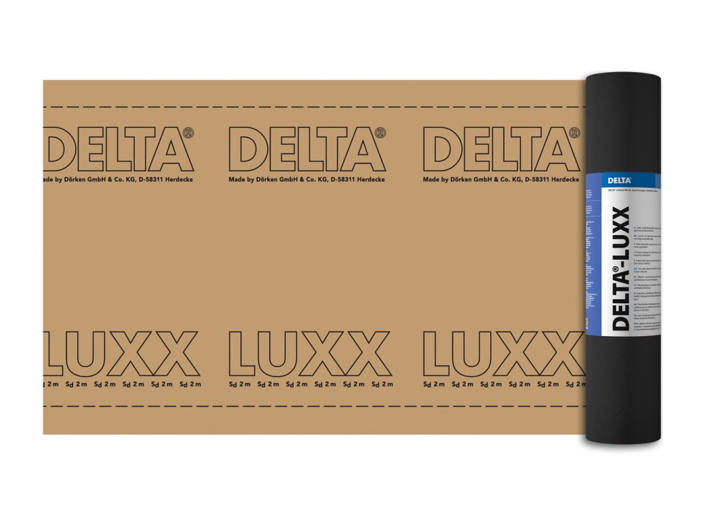 - Vzduchotesná a parobrzdná fólie pre šikmé strechy zložená z dvoch vrstiev.
